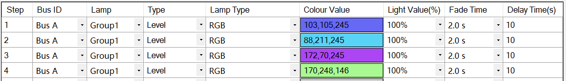 The sequence function allows users to create a series of one-time or recurring light source adjustments. The DLC-02 supports 16 sequences, and each sequence may set up to 17 different types of shifting effects, such as changes in light color, brightness, and color temperature, etc. These effects can be managed by DALI panel switches to create a darker lighting environment that is appropriate for bars, KTVs, and other occasions.