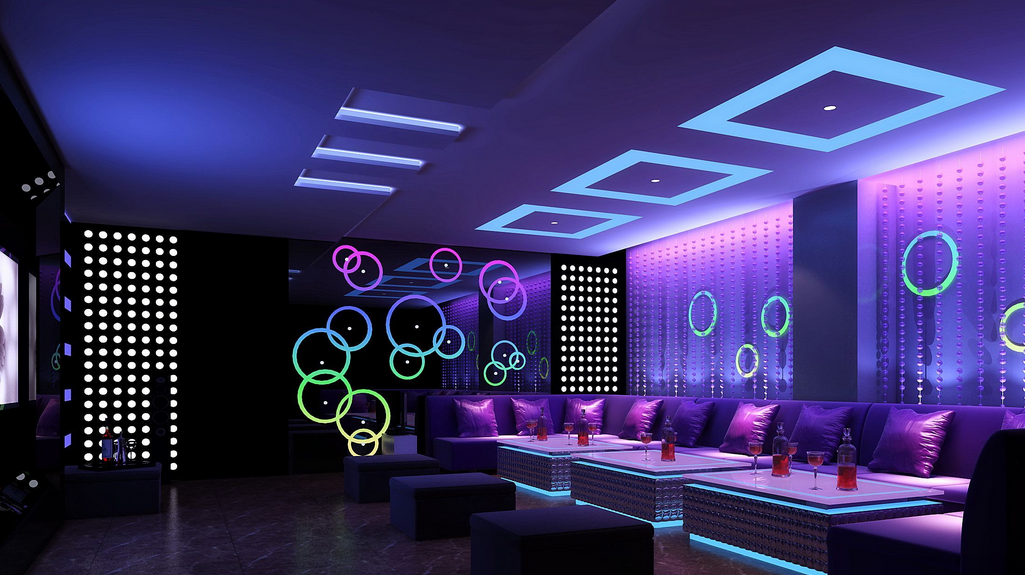 The KTV room's loop lighting effect is set to change colors every 10 seconds as shown: