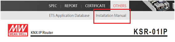To the web homepage of MEAN WELL KNX product you use, you can find the installation manual or product manual at “other” sub-page and download it.