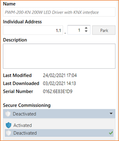 It is not required to modify the entire KNX system or parts of it, or to update it to secure communication. The system integrator just need to set the Secure Commissioning to “Deactivated” in the application database of KNX Data Secure device shown in the picture below.